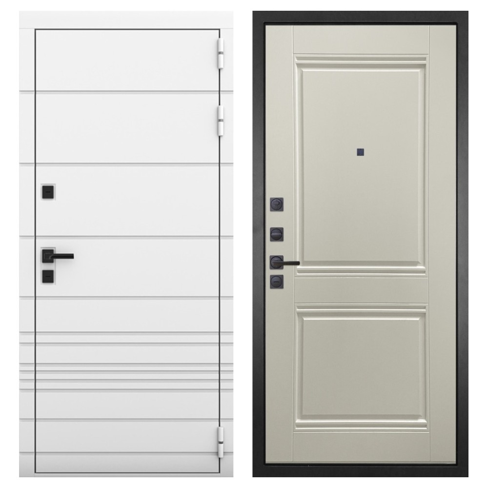 Функциональность и удобство: Чёрная фурнитура выгодно контрастирует с белой отделкой, создавая стильный акцент. Удлинённый глазок, усиленная ручка и качественные петли обеспечивают удобство повседневного использования.