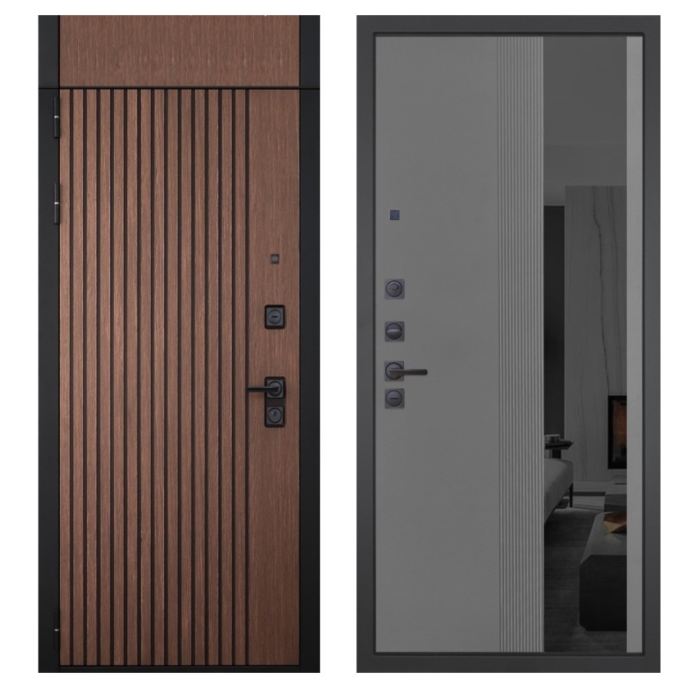 Гранит Шторм с фрамугой, панель 086 Серый рельеф софт с тонированным зеркало 10 мм