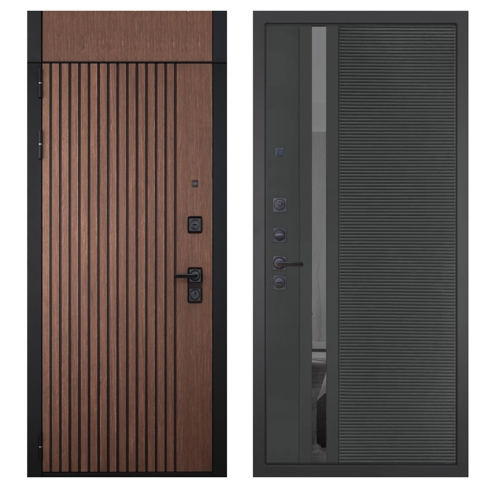 Гранит Шторм с фрамугой, панель 090 Черный кварц с зеркальной тонированной вставкой 10 мм