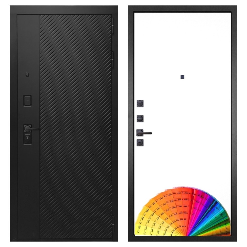 Дизайн и отделка: Конструкция выполнена из прочной стали с толщиной полотна 110–126 мм и окрашена износостойким полимерно-порошковым покрытием. Хромированный логотип и МДФ-наличники придают двери аккуратный и современный вид. Чёрная квадратная фурнитура подчёркивает строгий дизайн и универсальность модели.