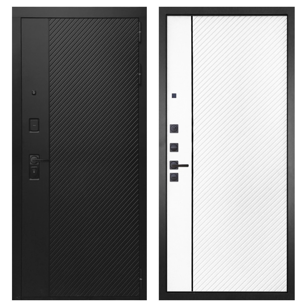 Дизайн и отделка: Конструкция выполнена из прочной стали с толщиной полотна 110–126 мм и окрашена износостойким полимерно-порошковым покрытием. Хромированный логотип и МДФ-наличники придают двери аккуратный и современный вид. Чёрная квадратная фурнитура подчёркивает строгий дизайн и универсальность модели.