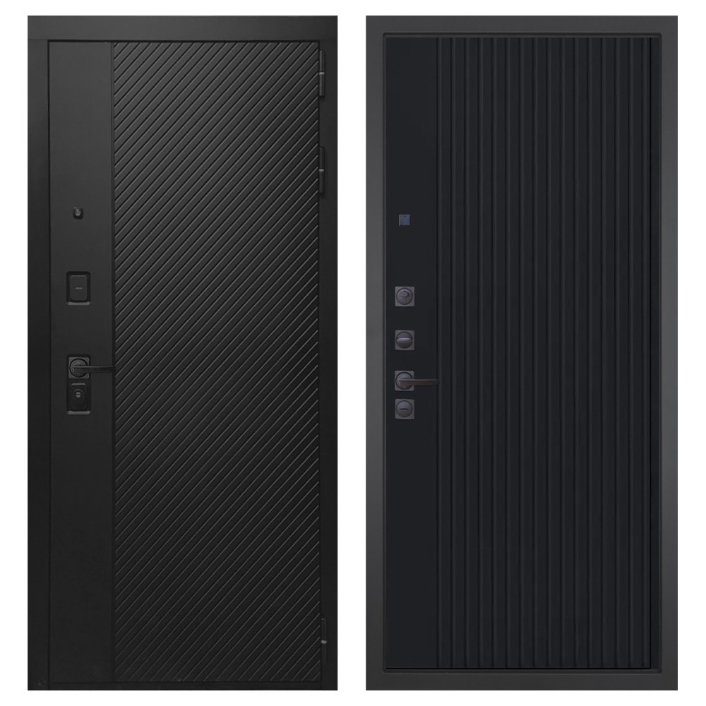 Дизайн и отделка: Конструкция выполнена из прочной стали с толщиной полотна 110–126 мм и окрашена износостойким полимерно-порошковым покрытием. Хромированный логотип и МДФ-наличники придают двери аккуратный и современный вид. Чёрная квадратная фурнитура подчёркивает строгий дизайн и универсальность модели.