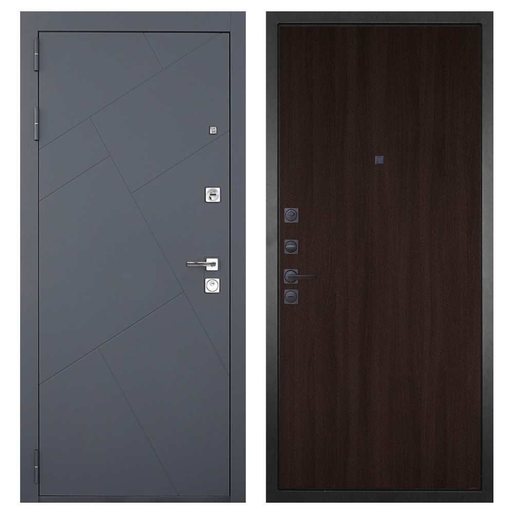 Дизайн и отделка: Металлическая конструкция окрашена в цвет «Серый муар» — прочное полимерно-порошковое покрытие, устойчивое к износу и царапинам. МДФ-наличники и квадратная фурнитура цвета «Хром» создают современный, лаконичный облик.