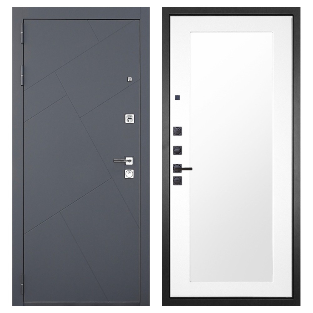 Дизайн и отделка: Металлическая конструкция окрашена в цвет «Серый муар» — прочное полимерно-порошковое покрытие, устойчивое к износу и царапинам. МДФ-наличники и квадратная фурнитура цвета «Хром» создают современный, лаконичный облик.