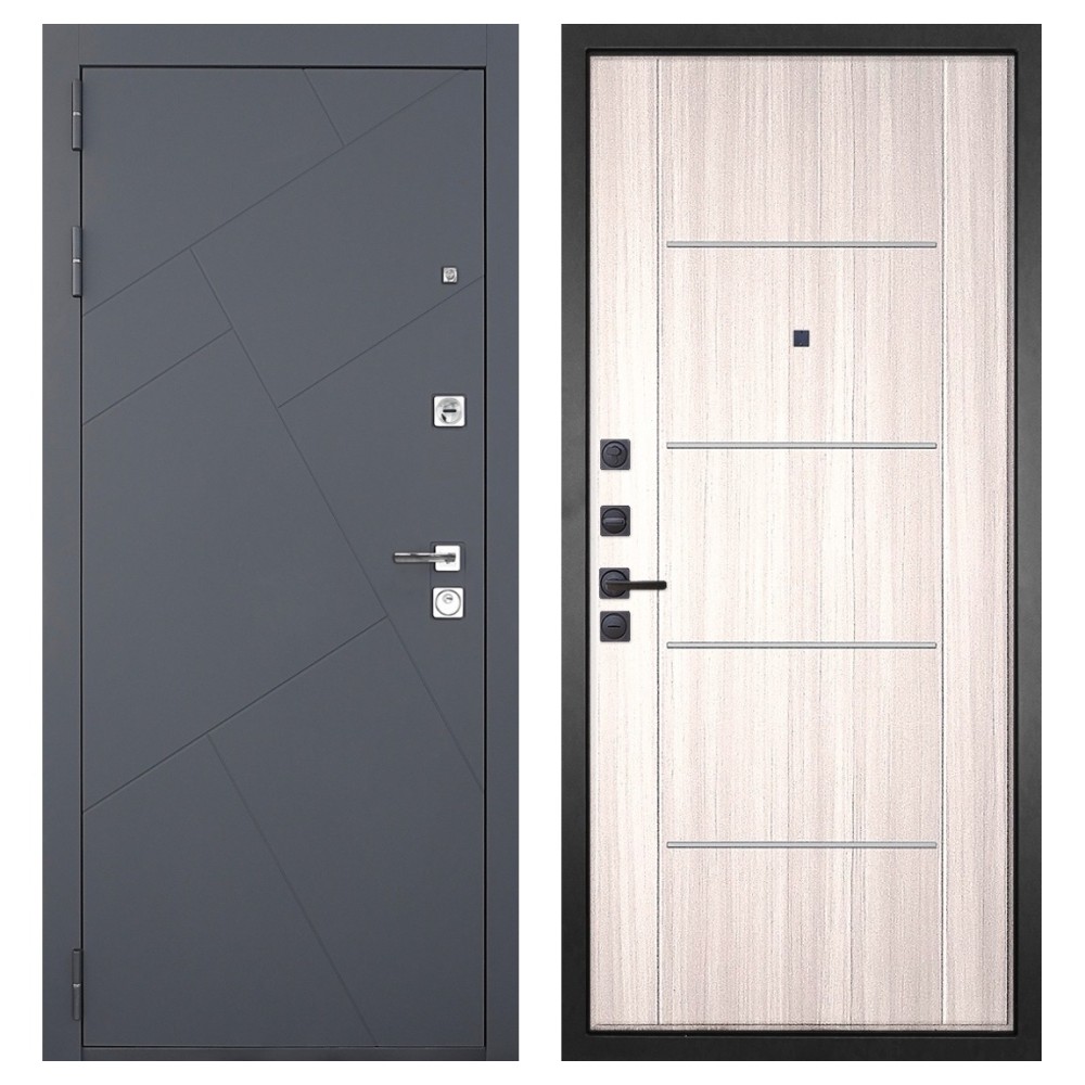 Дизайн и отделка: Металлическая конструкция окрашена в цвет «Серый муар» — прочное полимерно-порошковое покрытие, устойчивое к износу и царапинам. МДФ-наличники и квадратная фурнитура цвета «Хром» создают современный, лаконичный облик.