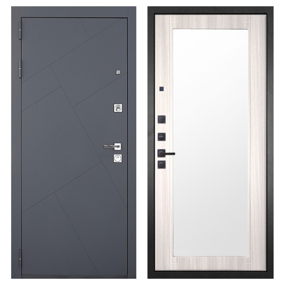 Дизайн и отделка: Металлическая конструкция окрашена в цвет «Серый муар» — прочное полимерно-порошковое покрытие, устойчивое к износу и царапинам. МДФ-наличники и квадратная фурнитура цвета «Хром» создают современный, лаконичный облик.