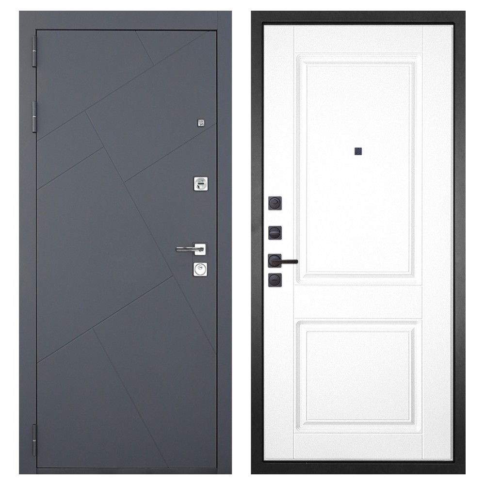 Дизайн и отделка: Металлическая конструкция окрашена в цвет «Серый муар» — прочное полимерно-порошковое покрытие, устойчивое к износу и царапинам. МДФ-наличники и квадратная фурнитура цвета «Хром» создают современный, лаконичный облик.