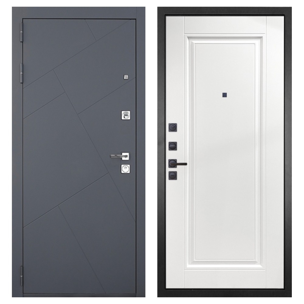 Дизайн и отделка: Металлическая конструкция окрашена в цвет «Серый муар» — прочное полимерно-порошковое покрытие, устойчивое к износу и царапинам. МДФ-наличники и квадратная фурнитура цвета «Хром» создают современный, лаконичный облик.
