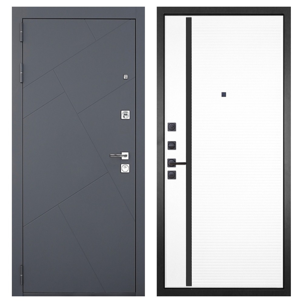 Дизайн и отделка: Металлическая конструкция окрашена в цвет «Серый муар» — прочное полимерно-порошковое покрытие, устойчивое к износу и царапинам. МДФ-наличники и квадратная фурнитура цвета «Хром» создают современный, лаконичный облик.