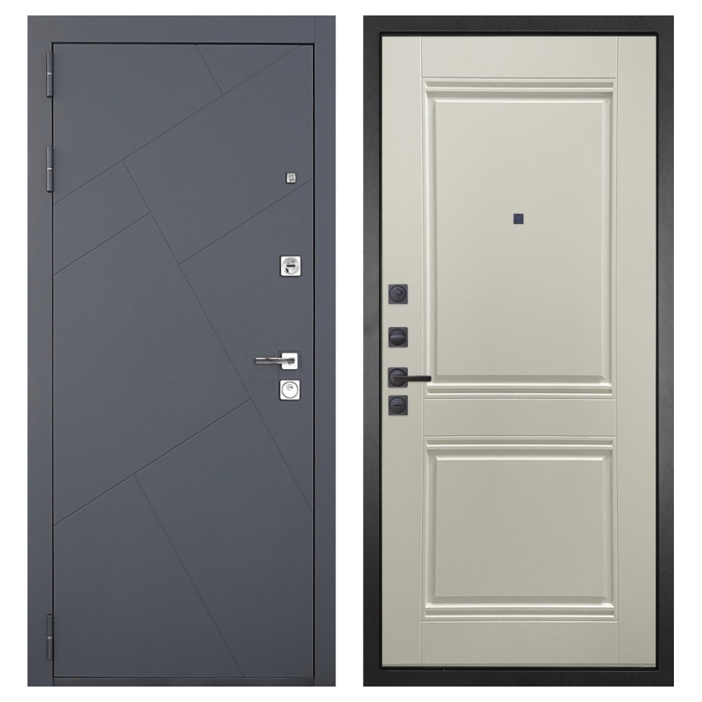 Дизайн и отделка: Металлическая конструкция окрашена в цвет «Серый муар» — прочное полимерно-порошковое покрытие, устойчивое к износу и царапинам. МДФ-наличники и квадратная фурнитура цвета «Хром» создают современный, лаконичный облик.