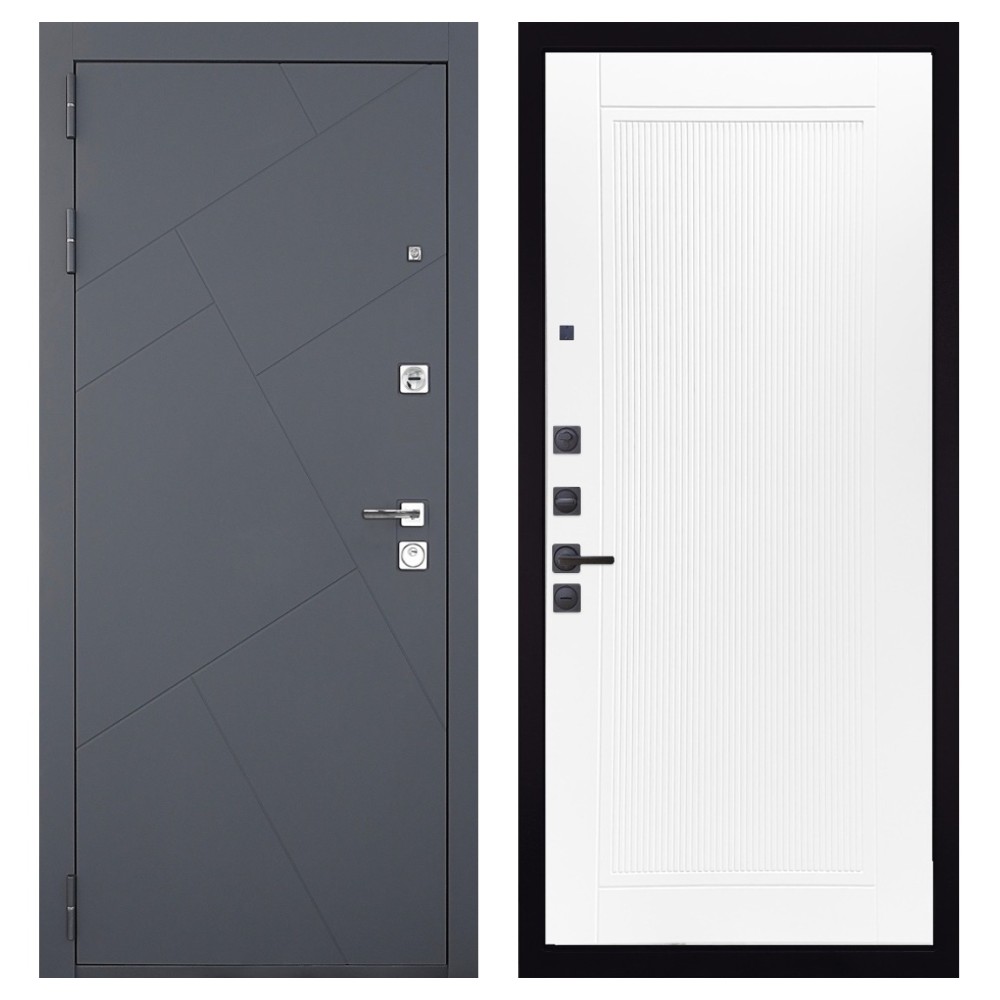 Дизайн и отделка: Металлическая конструкция окрашена в цвет «Серый муар» — прочное полимерно-порошковое покрытие, устойчивое к износу и царапинам. МДФ-наличники и квадратная фурнитура цвета «Хром» создают современный, лаконичный облик.