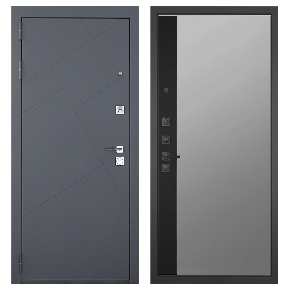 Дизайн и отделка: Металлическая конструкция окрашена в цвет «Серый муар» — прочное полимерно-порошковое покрытие, устойчивое к износу и царапинам. МДФ-наличники и квадратная фурнитура цвета «Хром» создают современный, лаконичный облик.