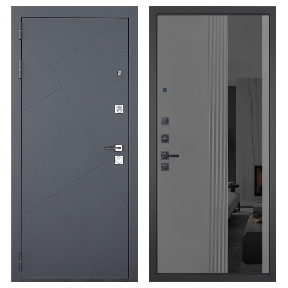 Дизайн и отделка: Металлическая конструкция окрашена в цвет «Серый муар» — прочное полимерно-порошковое покрытие, устойчивое к износу и царапинам. МДФ-наличники и квадратная фурнитура цвета «Хром» создают современный, лаконичный облик.