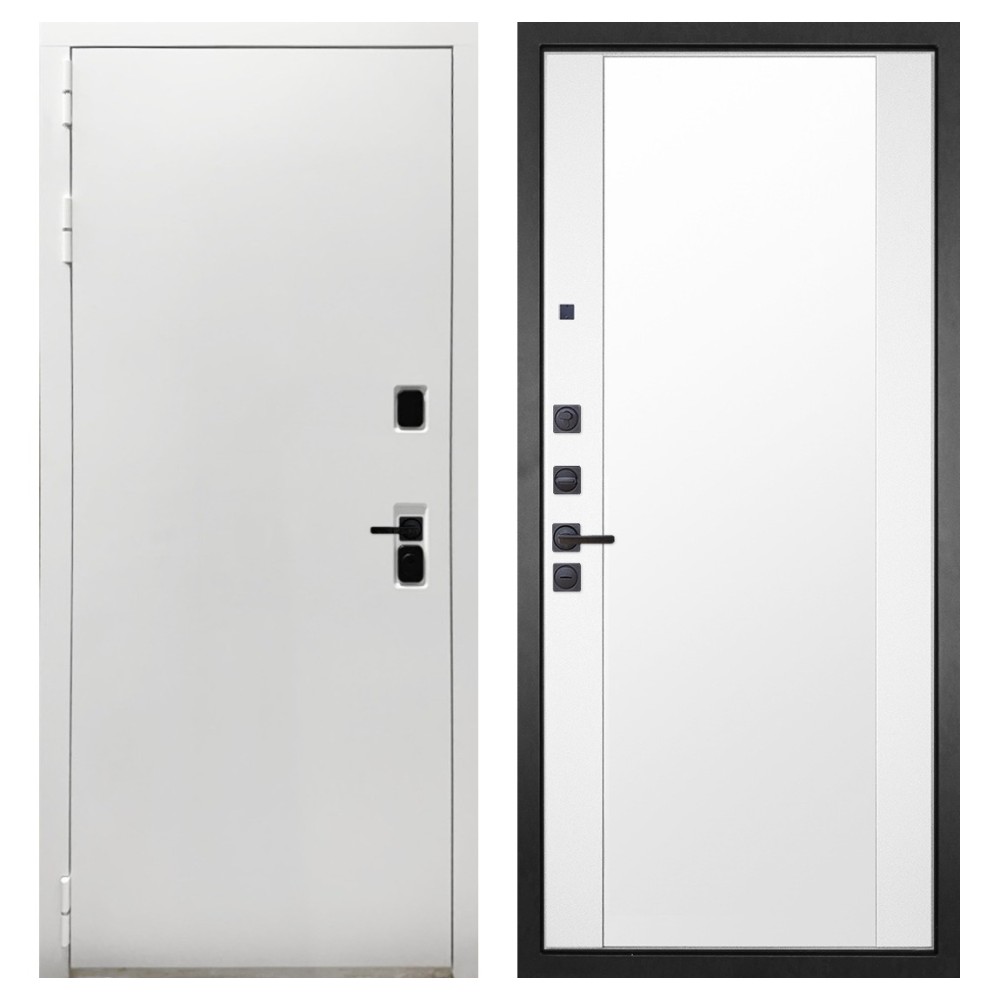 Дизайн и отделка: Белая полимерно-порошковая покраска металлоконструкции устойчива к износу и идеально подходит под интерьер квартиры. Внешняя МДФ-панель и наличники также выполнены в белом цвете, создавая чистый аккуратный вид. Чёрная фурнитура добавляет стильный контраст.