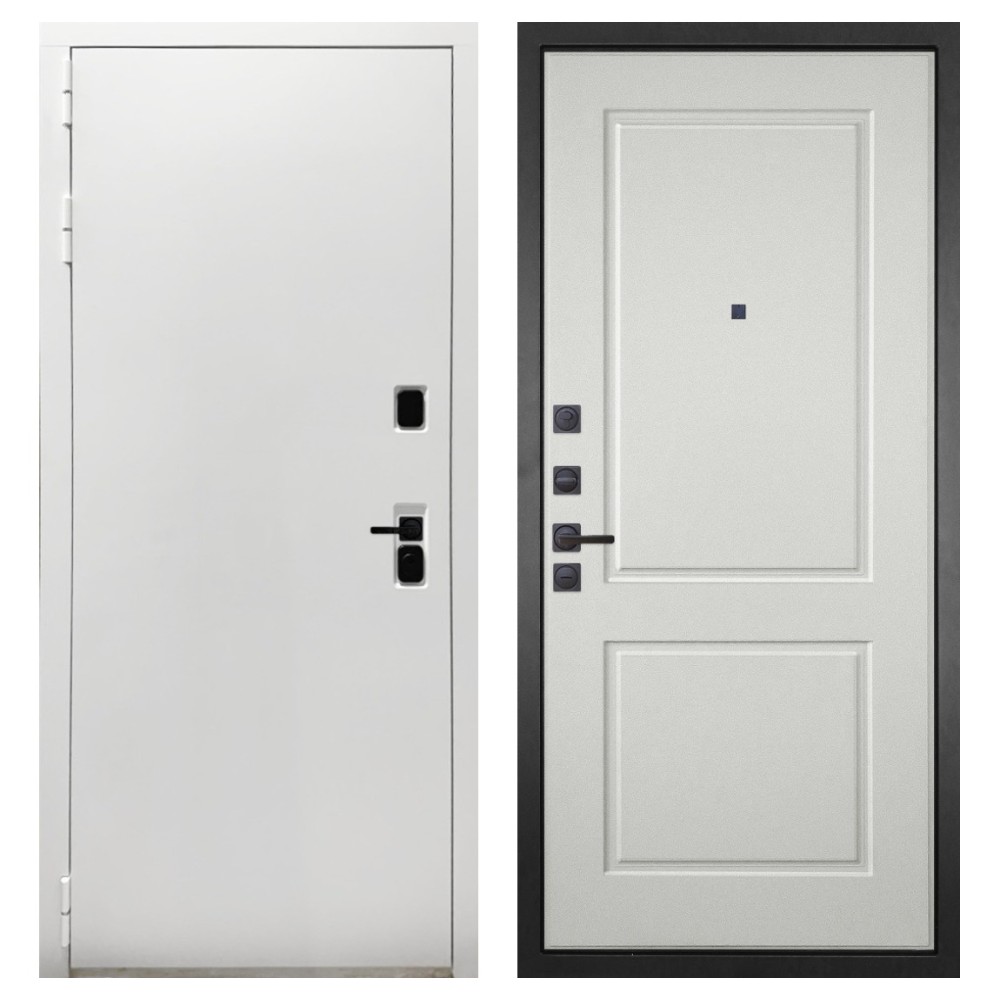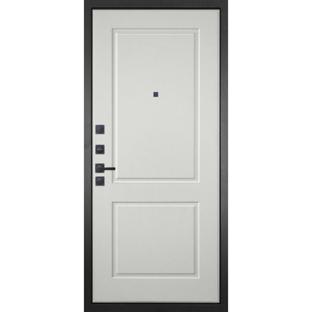 Дизайн и отделка: Белая полимерно-порошковая покраска металлоконструкции устойчива к износу и идеально подходит под интерьер квартиры. Внешняя МДФ-панель и наличники также выполнены в белом цвете, создавая чистый аккуратный вид. Чёрная фурнитура добавляет стильный контраст.