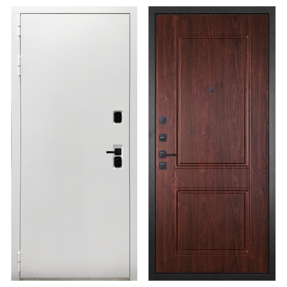 Дизайн и отделка: Белая полимерно-порошковая покраска металлоконструкции устойчива к износу и идеально подходит под интерьер квартиры. Внешняя МДФ-панель и наличники также выполнены в белом цвете, создавая чистый аккуратный вид. Чёрная фурнитура добавляет стильный контраст.