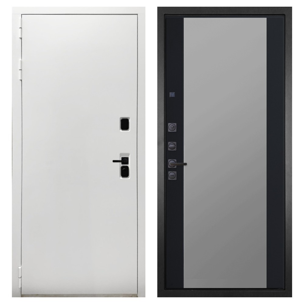 Дизайн и отделка: Белая полимерно-порошковая покраска металлоконструкции устойчива к износу и идеально подходит под интерьер квартиры. Внешняя МДФ-панель и наличники также выполнены в белом цвете, создавая чистый аккуратный вид. Чёрная фурнитура добавляет стильный контраст.