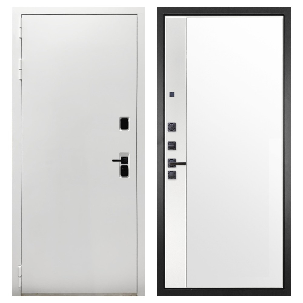 Дизайн и отделка: Белая полимерно-порошковая покраска металлоконструкции устойчива к износу и идеально подходит под интерьер квартиры. Внешняя МДФ-панель и наличники также выполнены в белом цвете, создавая чистый аккуратный вид. Чёрная фурнитура добавляет стильный контраст.
