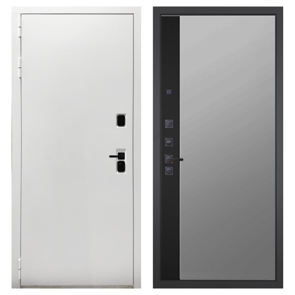 Дизайн и отделка: Белая полимерно-порошковая покраска металлоконструкции устойчива к износу и идеально подходит под интерьер квартиры. Внешняя МДФ-панель и наличники также выполнены в белом цвете, создавая чистый аккуратный вид. Чёрная фурнитура добавляет стильный контраст.