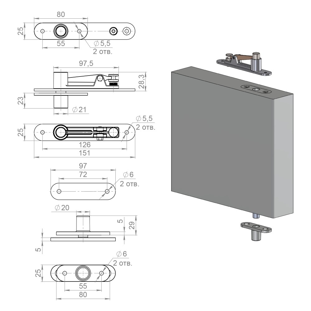 | Толщина двери | от 40 мм |