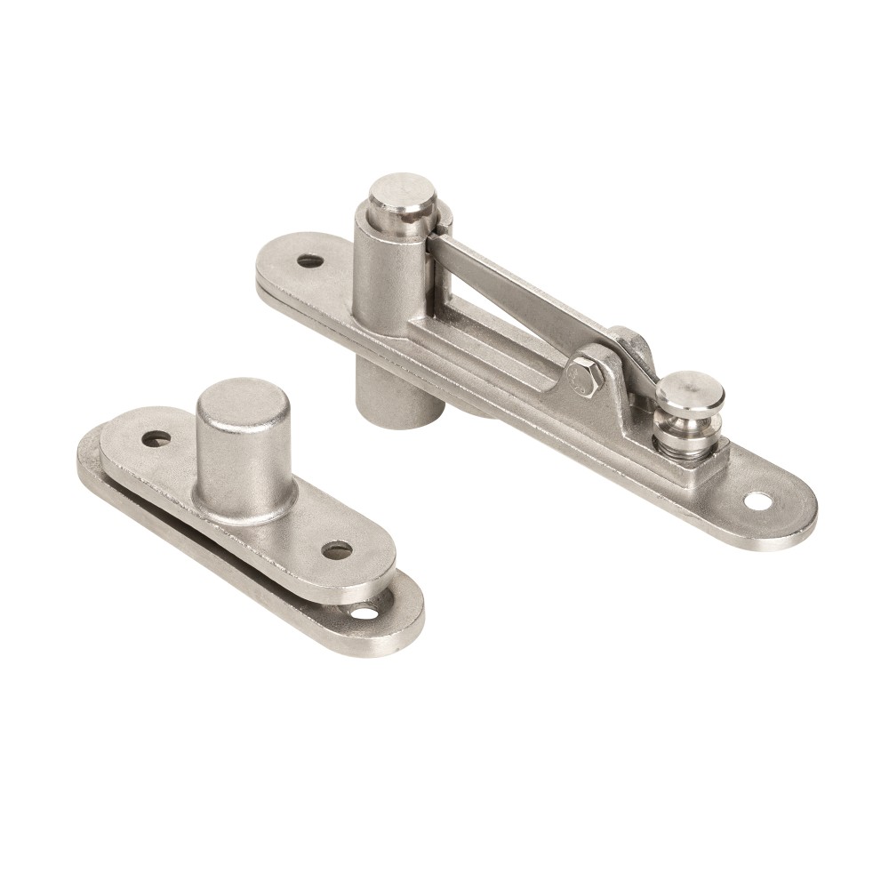 Комплект для маятниковых дверей состоит из верхней и нижней пететь. Подходят для деревянных дверей шириной до 1 500 мм. и высотой до 2 800 мм. весом до 100 кг. Петли без функции довода и фиксацию 90°.