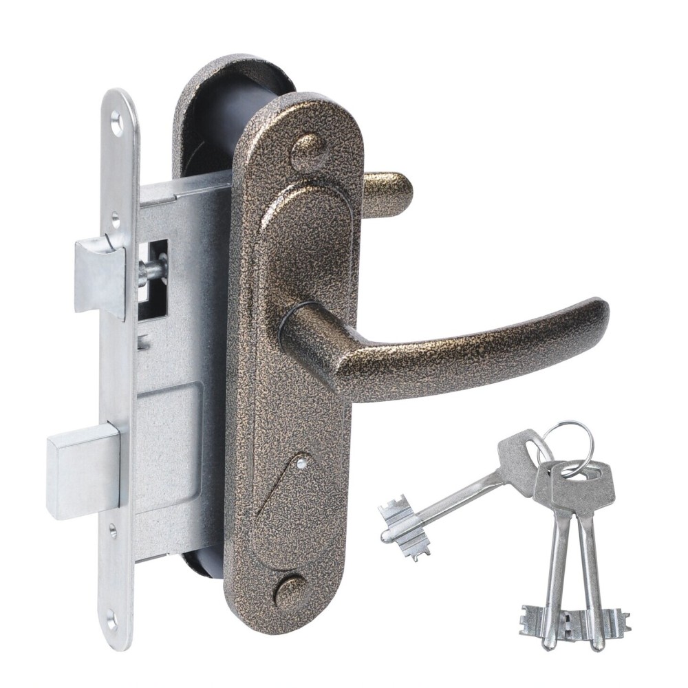 Замок Absolyute (Абсолют) врезной сувальдный с защёлкой в комплекте с ручкой ЗВ9.2-08 (бронза), 3 кл.
