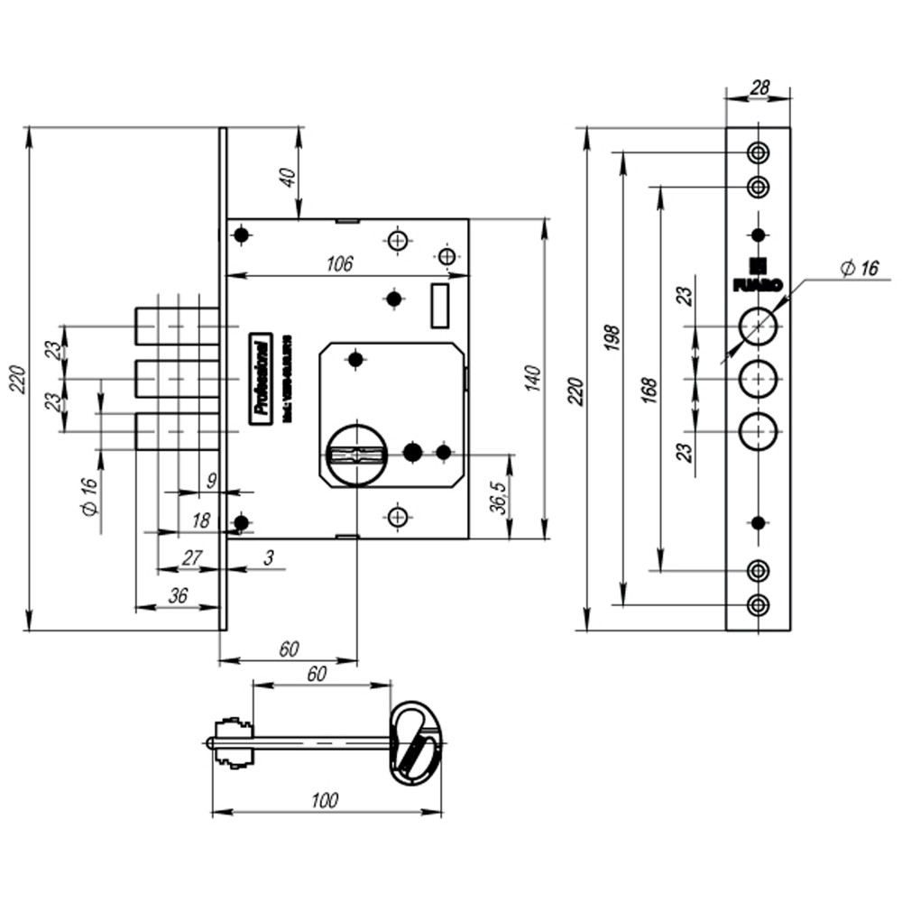 Замок врезной сувальдный Fuaro V25/S-60.00.3R16 с тремя ригелями предназначен для установки во входные металлические двери. Стальной оцинкованный корпус. Закаленная пластина от высверливания. Универсальная установка, подходит для левых и правых дверей.8 сувальд. Бэксет- 60мм. Выход ригелей- 36мм. Открывание-4 полуоборота. Диаметр ригелей -16мм. В комплект входят: 5 замаковых ключей с эргономичной пластиковой головкой для дверей толщиной 40-120мм, крепежная фурнитура.Распространённый тип-размер, не требуется переналадка оборудования для перехода на замки серии V25.