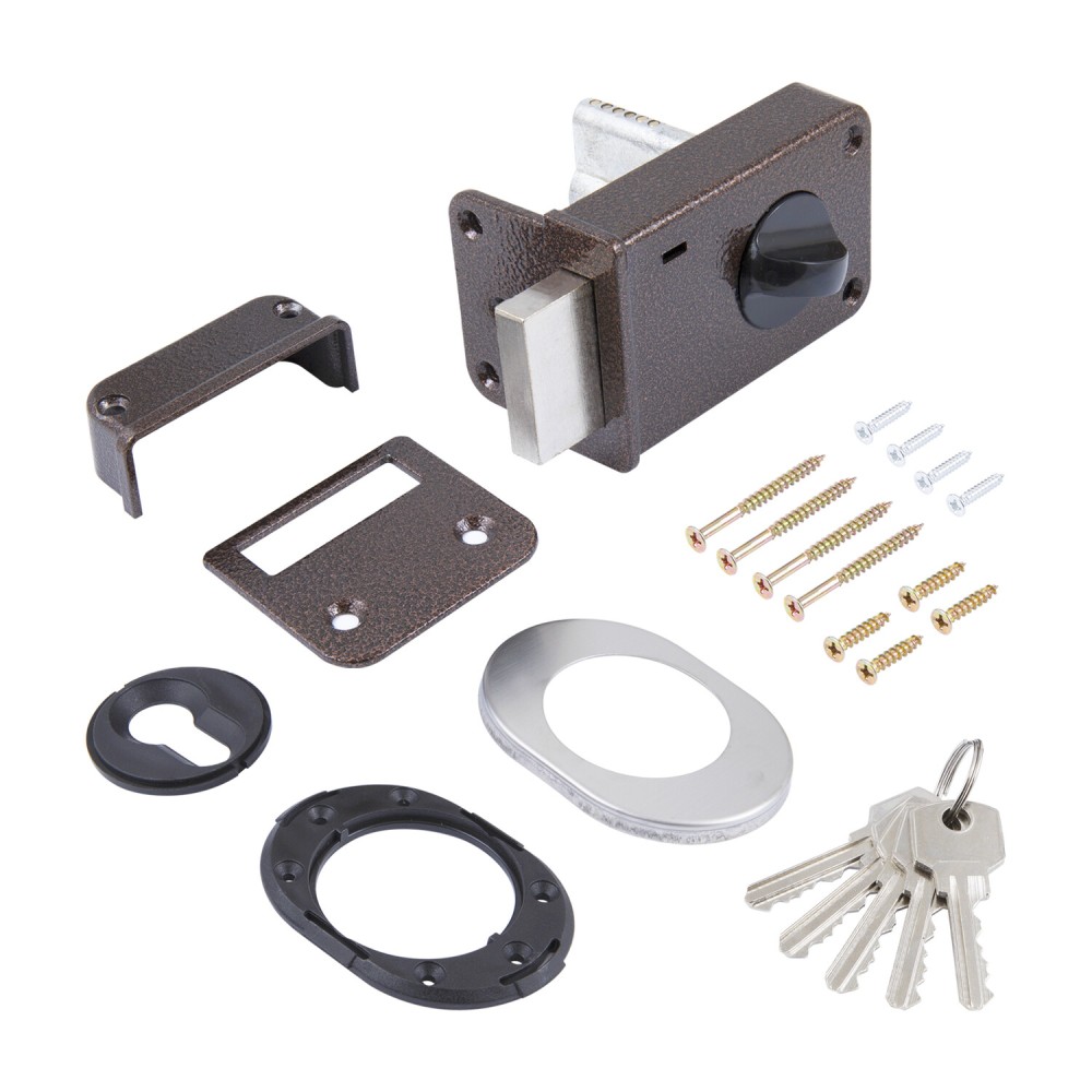 Замок накладной цилиндровый ЗН1-1 ЗАЗ подходит для деревянных дверей. Металлический корпус окрашен в медный антик. Популярная модель накладного замка совместима по посадочным размерам с замками ЗН1-1 производства ЗАЗ Мотор Сич. Укомплектован 5-ью ключами, запорной коробкой и накладкой.