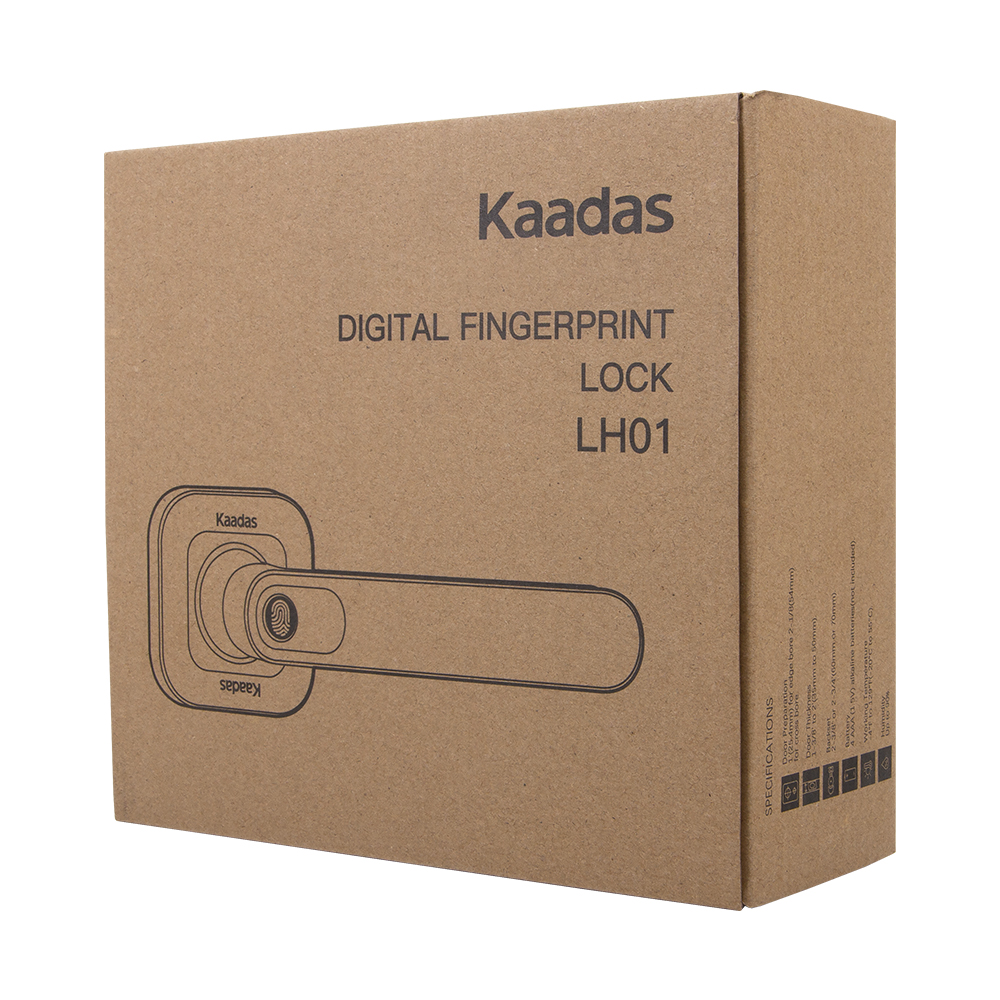 Kaadas LH01 электронный замок-ручка врезного типа с одноригельной системой. Замок открывается только с помощью отпечатка пальца. Сохраняет до 50ти отпечатков. Механического ключа нет. Рекомендуемая толщина двери от 35 до 55мм. Габаритные размеры: 160х70,5х65 мм.