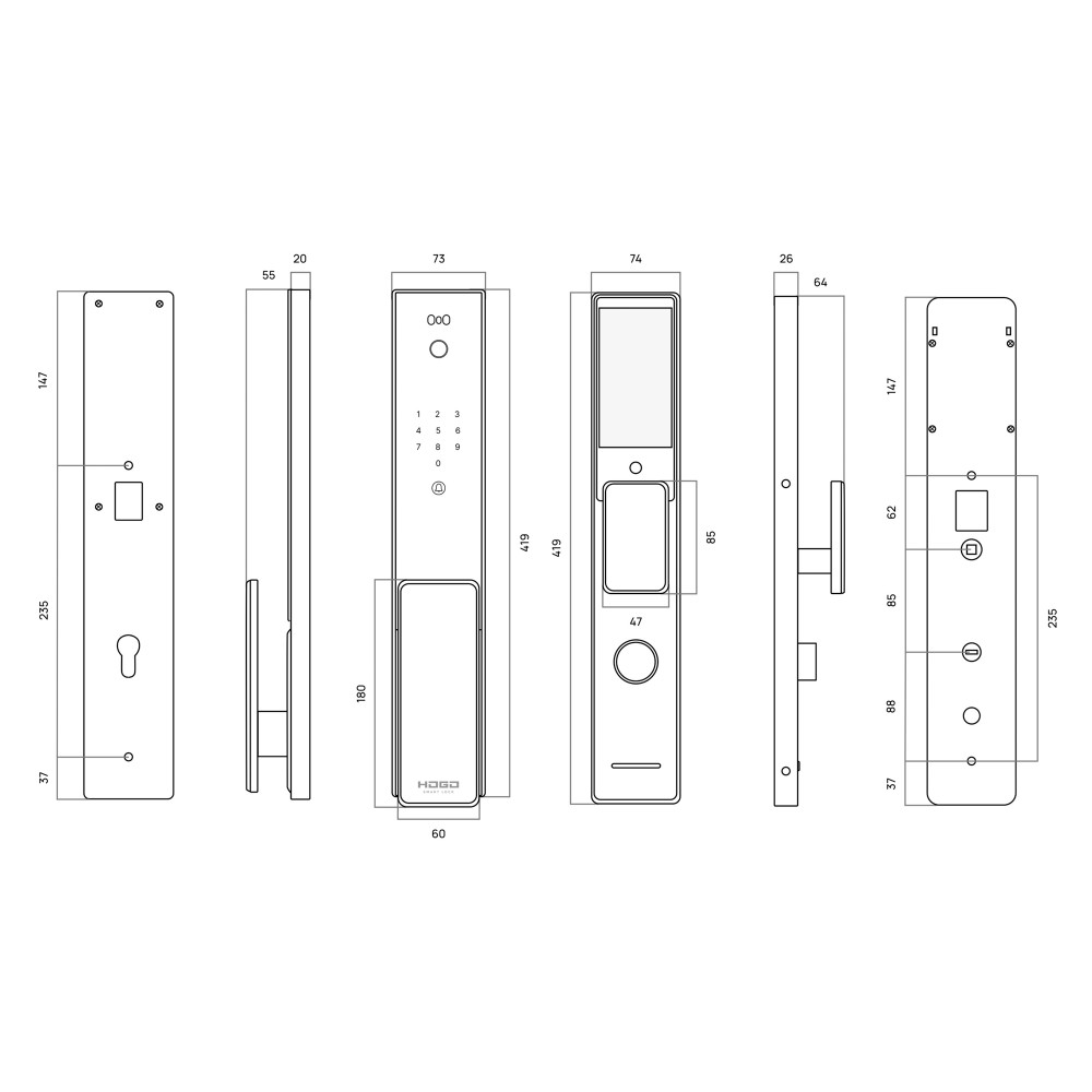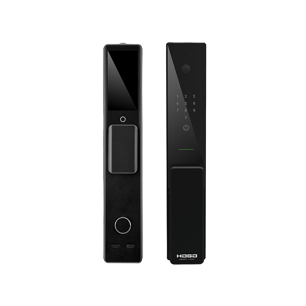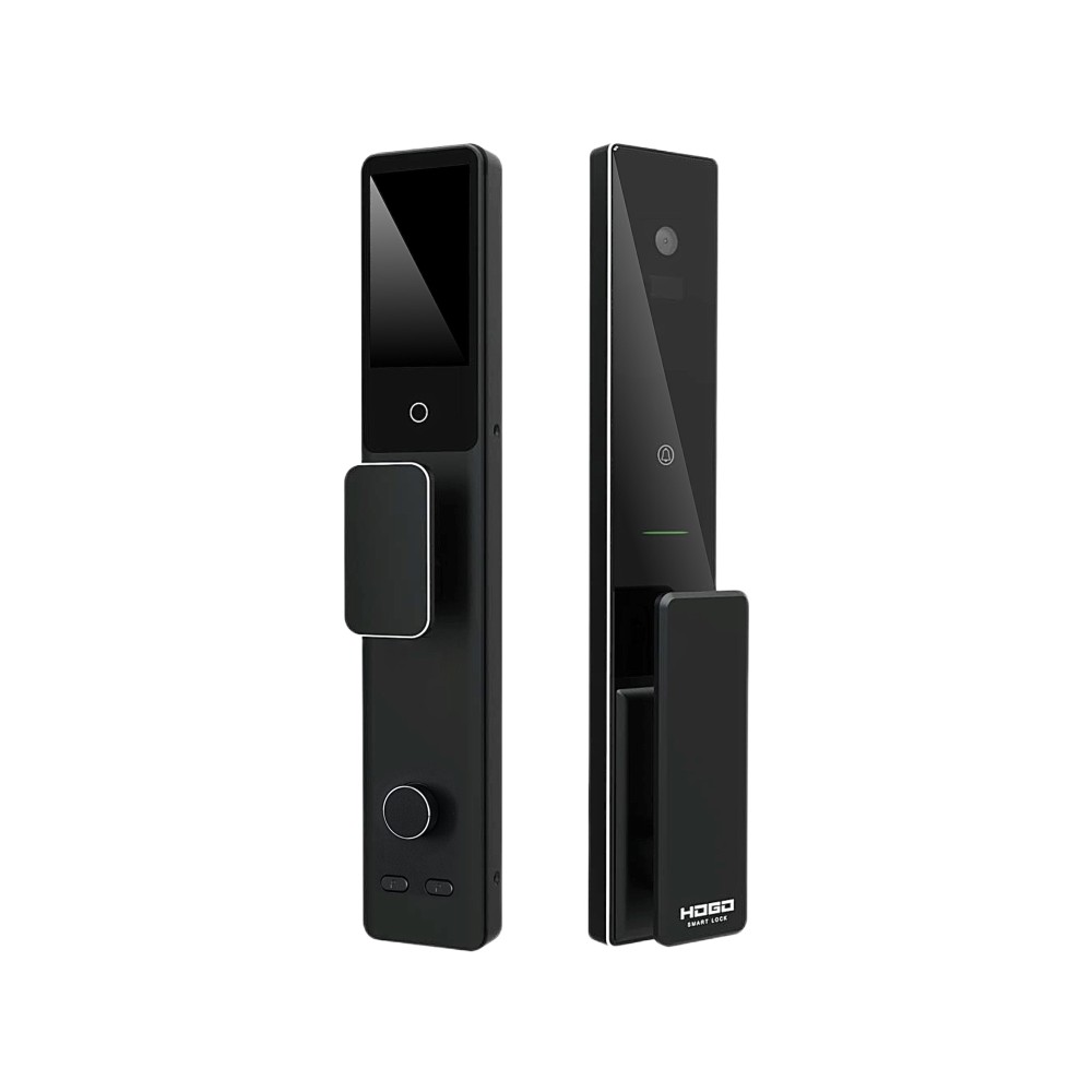 Замок врезной электронный Hogo V07 с функцией видеодомофона подходит практически для всех видов дверей, как для входных, так и для межкомнатных правого и левого открывания. Корпус замка выполнен из особо прочного пластика, сам замок выполнена из стали. Современный минималистичный дизайн и самые продвинутые технологии. Может комплектоваться различными врезными замками с межосевым расстоянием 85 мм. Способы открытия: отпечаток пальца, сканер лица (Face ID), цифровой пароль, IC карта, механический ключ, приложение через смартфон. Новая система также позволяет генерировать пароли без системы интернет, раздавать пароли по временному ограничению: на одиночное открытие, по дате, по времени и дате, автоматическое удаление паролей по истечению времени.