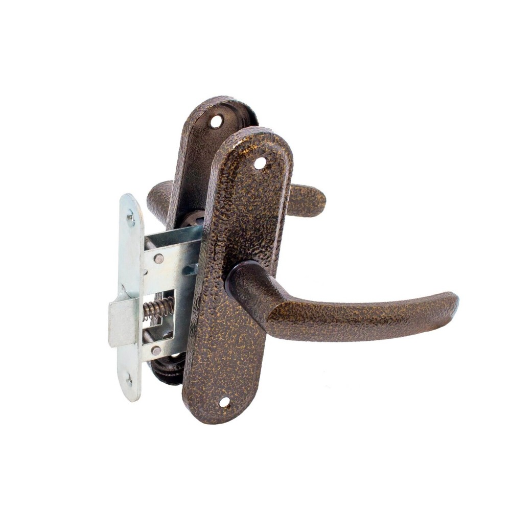 Защелка врезная с ручками. Предназначена для установки в деревянные двери толщиной до 45мм, правого и левого открывания. Универсальная защелка. Стальной корпус, покрыт гальваническим покрытием. Удаление ключевого отверстия 45мм. Материал ручек алюминиевый сплав. Комплектация: защелка, ручки, ответная планка, шурупы.